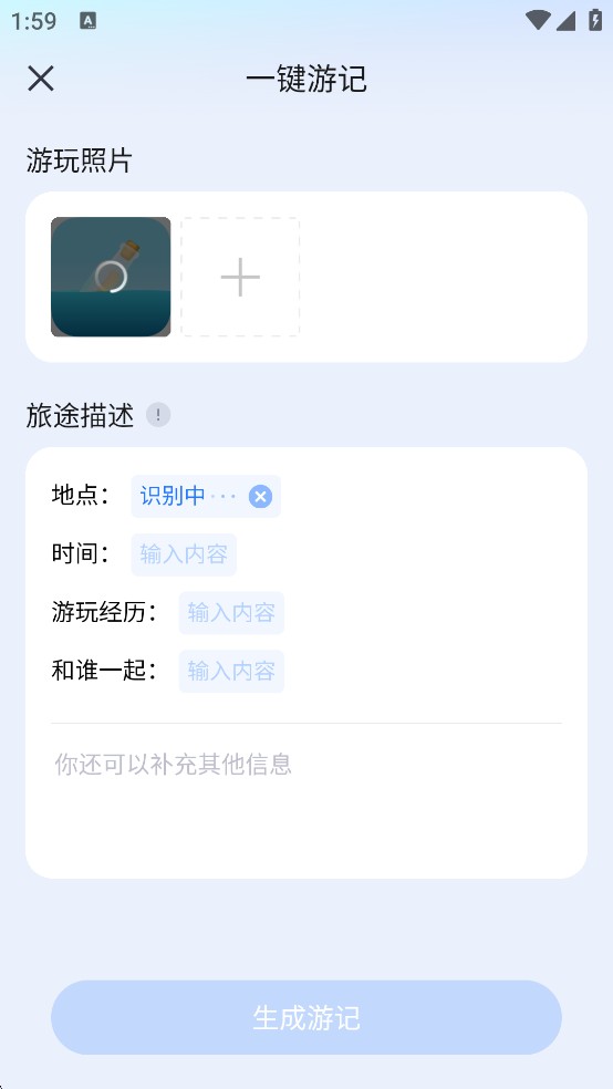 3、输入一些基础的信息,然后点击“生成游记”