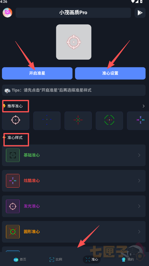 3、“准心”为大家推荐多达上百种不同样式的准星设置,准星根据个人习惯而定,没有特定的规定要求,用起来舒服就行,如果不确定的话,也可以在开始正式游戏对局以前,在准心设置中预览不同效果,以达到你个人的完美游戏需求目的。