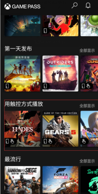 此时便可以畅玩云游戏了。在“用触控方式播放”里的游戏可以直接用手机玩,其他游戏需要外接XBOX手柄。