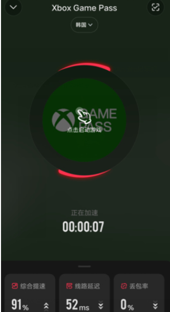 加速地区选择美国或者韩国,(不要选中国香港,用不了云游戏;没有地区选择就直接加速)