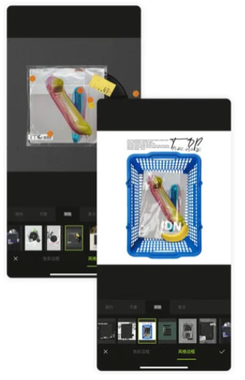 拿常见的“边框”功能来说:除了常规的纯色边框,App 还内置了多种风格的特色边框——复古电脑屏幕、CD 封面、车窗后视镜,甚至是地铁车门……所有生活中的物件,都可以成为照片边框的创意来源。这些奇思妙想,有时也能激发创作者的想象力。