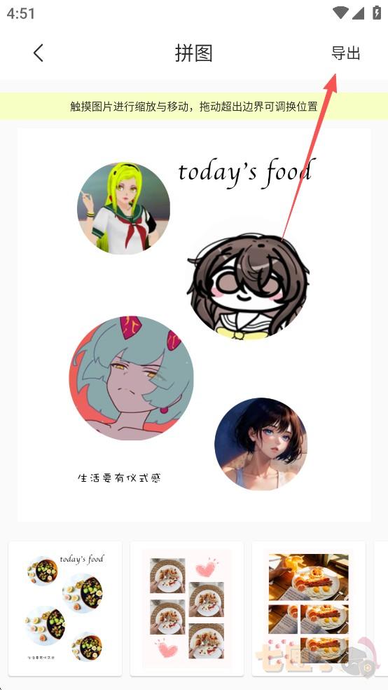 4、触摸图片进行缩放与移动,拖动超出边界可调换位置