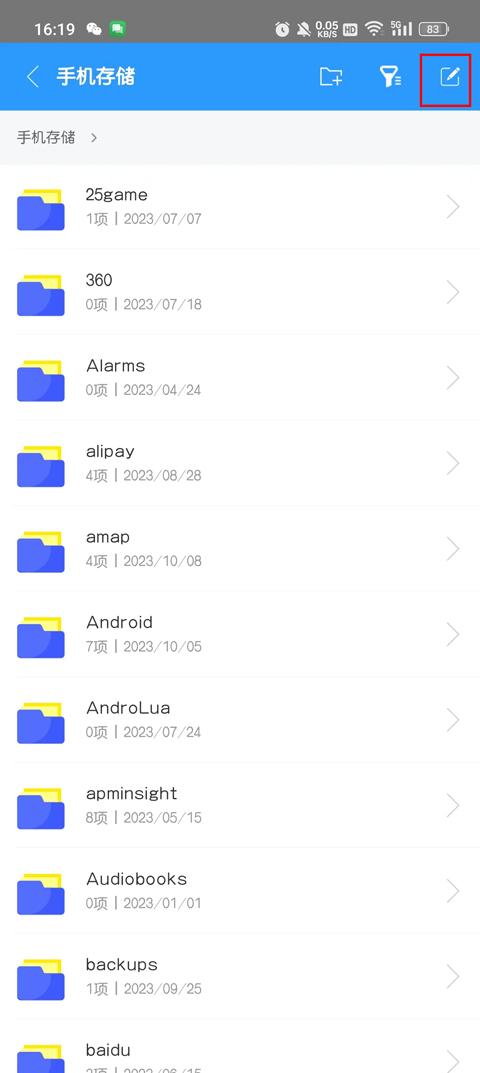 3、点击右上角全选你想压缩的文件;