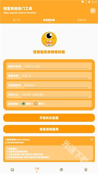 4、点击工具板块,可以在这输入其他设备属性配置并进行适配应用,即可获得相应配置的运行环境;
