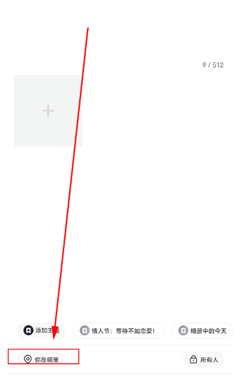 2、在内容页编辑完自己想要发布的内容后,点击打开下图所示位置“你在哪里”