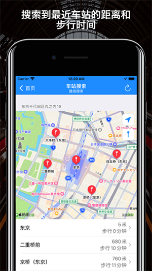 3、显示步行时间和到最近车站的出租车价格,还可很容易地搜索到上班、上学或其他目的地的路线。
