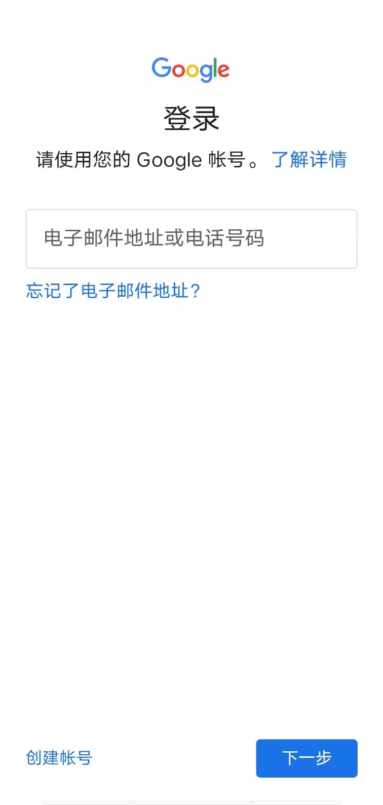 4.验证成功后,在谷歌登录页面输入谷歌账号,点击【下一步】;