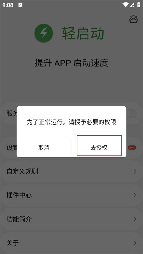 1、点击服务开启按钮,就会弹出方框然后点击去授权。