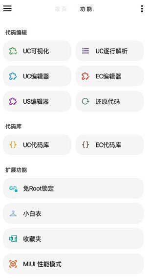 UC可视化、UC逐行解析、UC编辑器为画质修改功能。