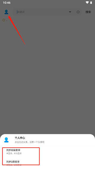 1、点击左上角进入个人中心,在下面就可以看到同步网易歌单和Q音歌单。