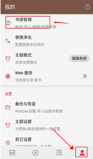 1、在本站下载打开软件,点击右下角【我的】,点击书源管理