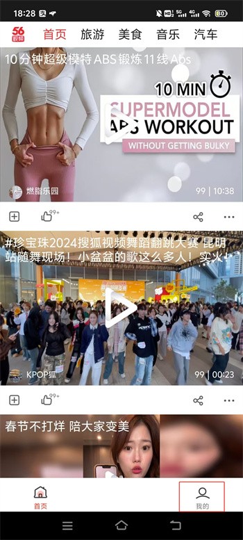 1、下载安装56视频后打开,直接就来到这样的首页界面中,点击右下角【我的】进入到主页中进行登录的操作;