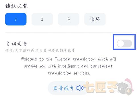 4、还可以选择播放次数,打开自动发音按钮,翻译成功后将自动进行朗读。