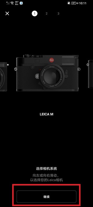 2、滑动相机,找到自己的徕卡相机,点击“继续”
