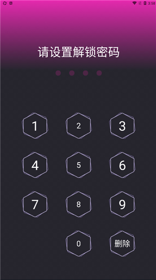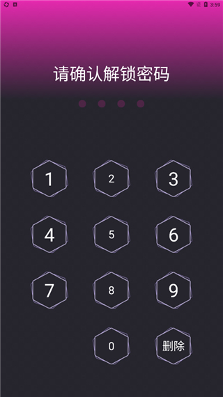 1、下在本站下载安装应用隐藏专家app,打开进入app,首先设置一个解锁密码;