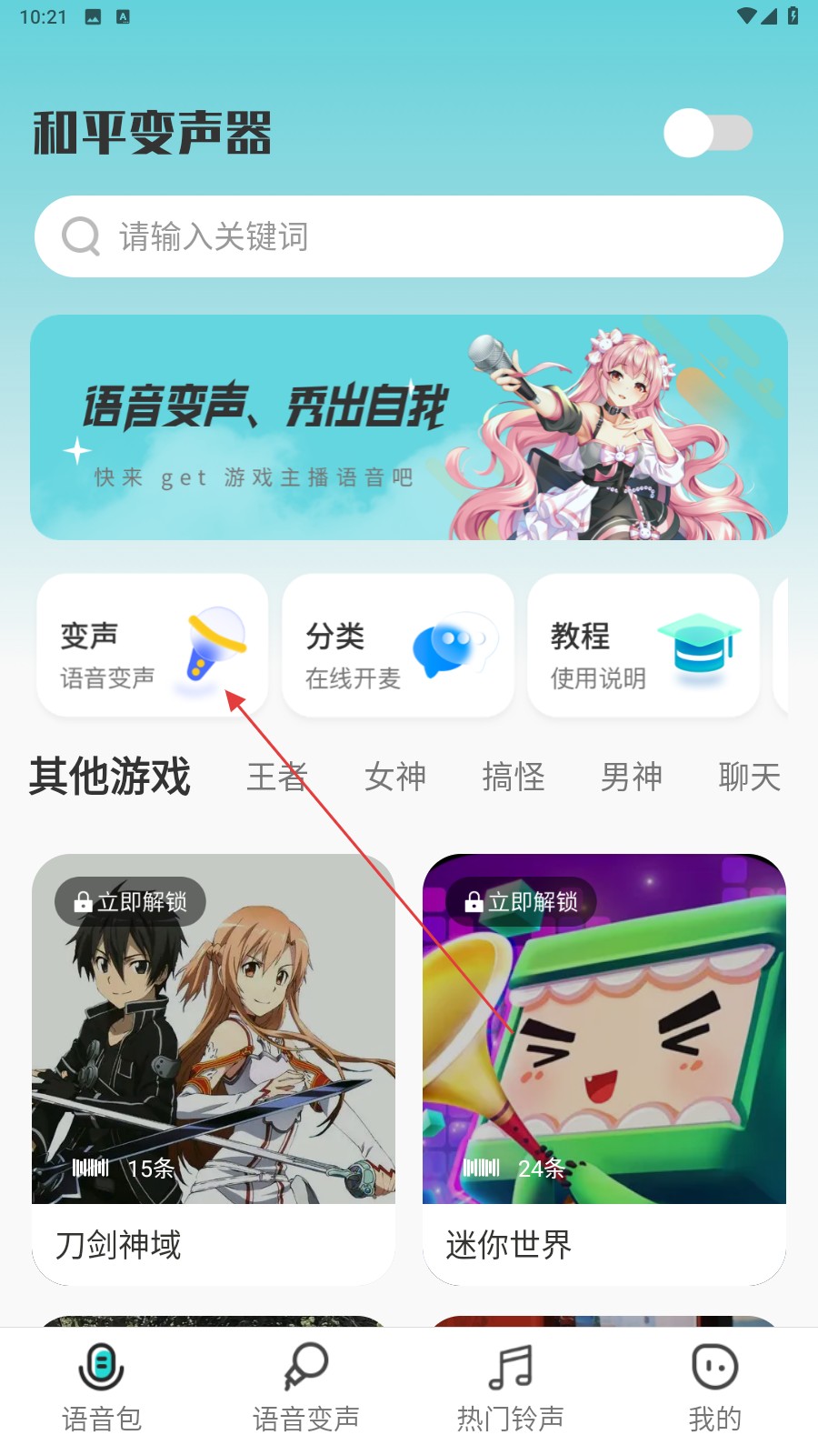 1、打开和平变声器,点【变声(语音变声)】进入功能页。