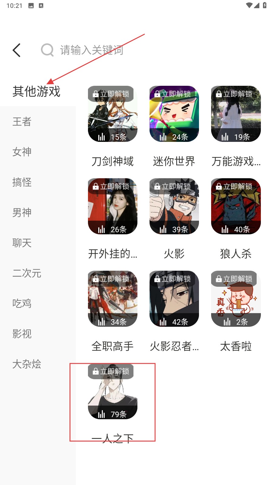 3、回到首页,从【其他游戏】分类找《一人之下》等语音包使用。
