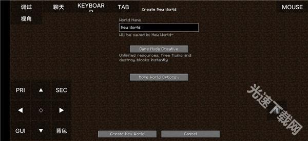 7、进入此界面后选择你的游戏模式以及名称并点击下方的“Create New World”;