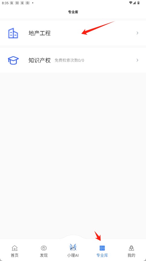 1、导航栏点击“专业库”进入页面,选择“地产工程”分类图标。
