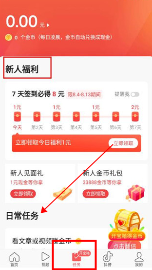 在本站下载头条搜索极速版,注册登陆,就能够领取新人红包