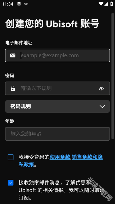 2、然后根据要求填写邮箱、密码、年龄后点击注册