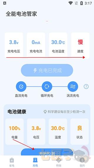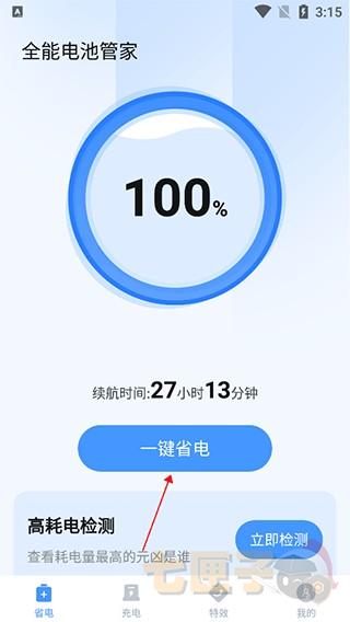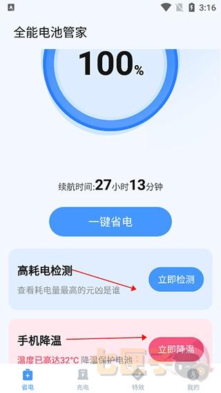 1、在本站下载安装全能电池管家app并打开,如果需要省电,会有一键省电的功能按键,开启就好了;