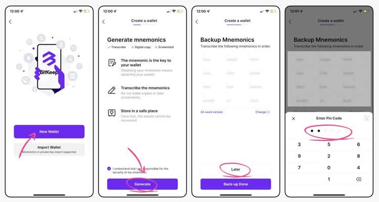 已有加密钱包的用户可以将此前生成的钱包,通过私钥或助记词导入BitKeep,从未创建过钱包的用户可按照以下步骤进行创建。
