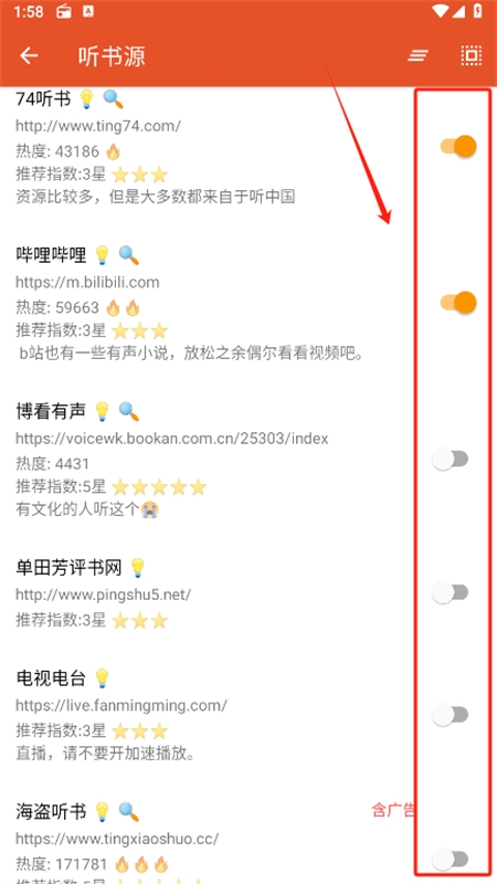 2、书源开启后就可以查看站点的有声小说的了,让大家都能直接播放。