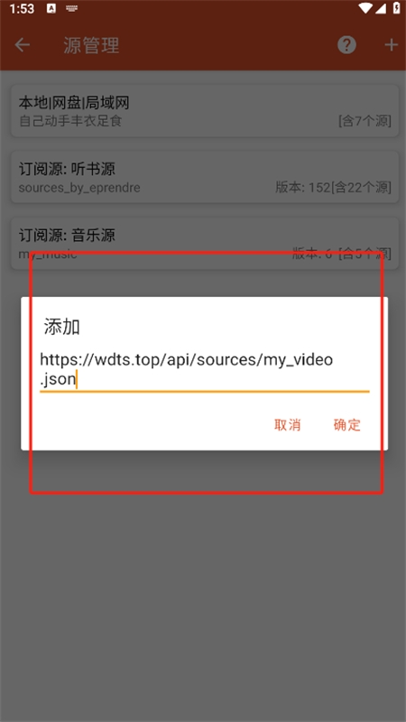4、然后输入书源地址点击确定即可