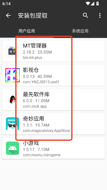 7、例如选择安装包提取进入,可以选择需要提取的应用