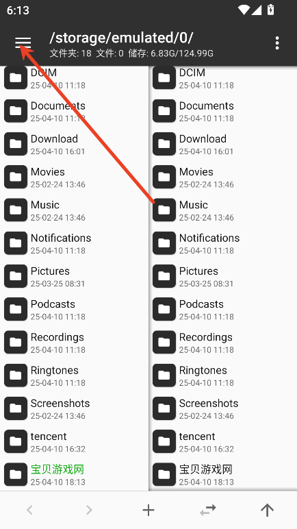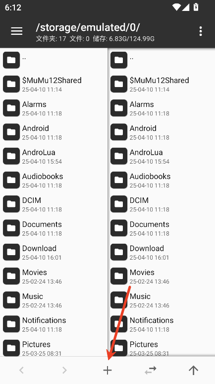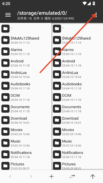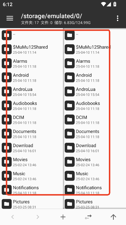 2、进入 MT 管理器,首先看到的是左右两个文件列表窗口。