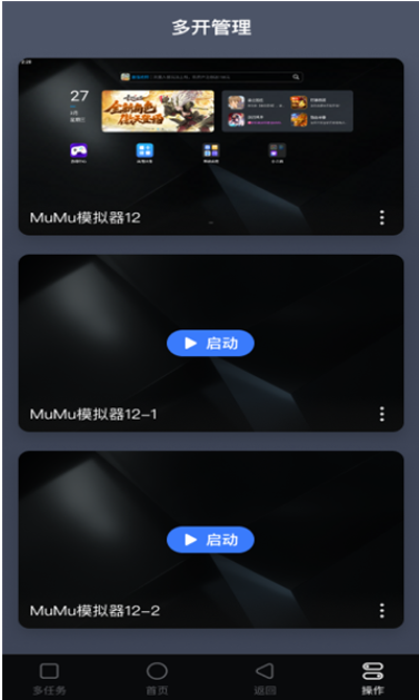 点击后会出现模拟器的多开管理界面,在这里可以新建、启动模拟器。点击已经在运行中的模拟器,进入MuMu直控模式