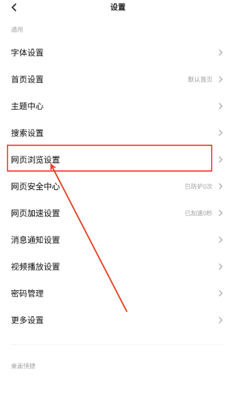 2、进入菜单,点击“网页浏览设置”