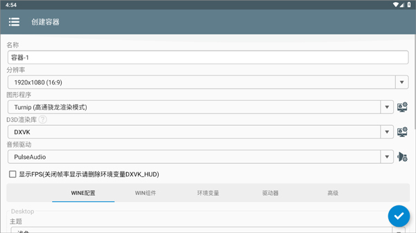 2、选择屏幕分辨率,以及设定显存大小(配置较低的手机显存和分辨率要小点)