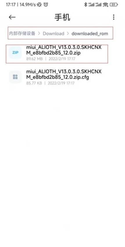 将修复的补丁复制回电脑,准备刷入手机,下面图片是修复的补丁名字