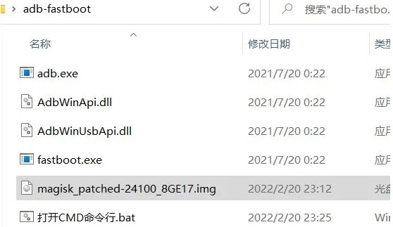 4.1 将重手机上复制回来的magisk_patched-xxxx_xxxx.img复制到adb-fastboot文件夹内