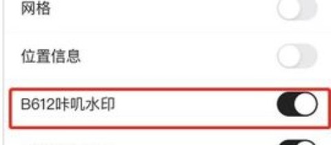 4、找到B612咔叽水印选项,打开开关即可(如图所示)。