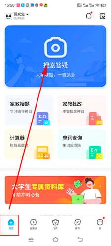 1. 开启软件后,会径直进入首页,此时点击拍照按钮,进而选择拍照搜题。