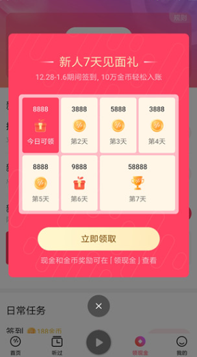 新人就有大红包!每天听书赚现金、签到赚现金、开宝箱赚现金……红包福利应有尽有,随时提现!