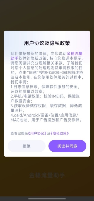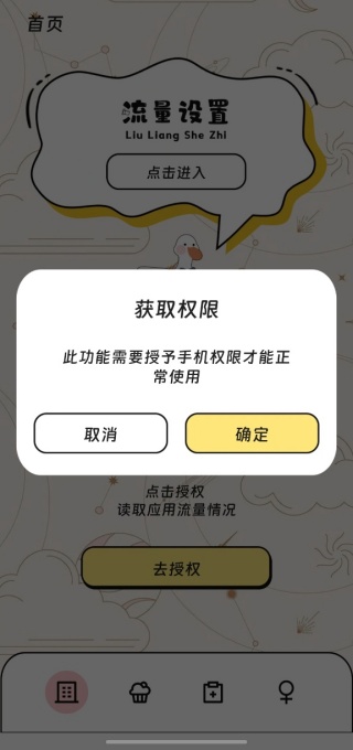 3.适用流量设置功能前,需要通过大家的手机来获得权限。