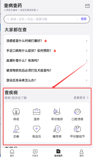 3.进入查病查药板块,可详细了解病症说明与药品使用指南。