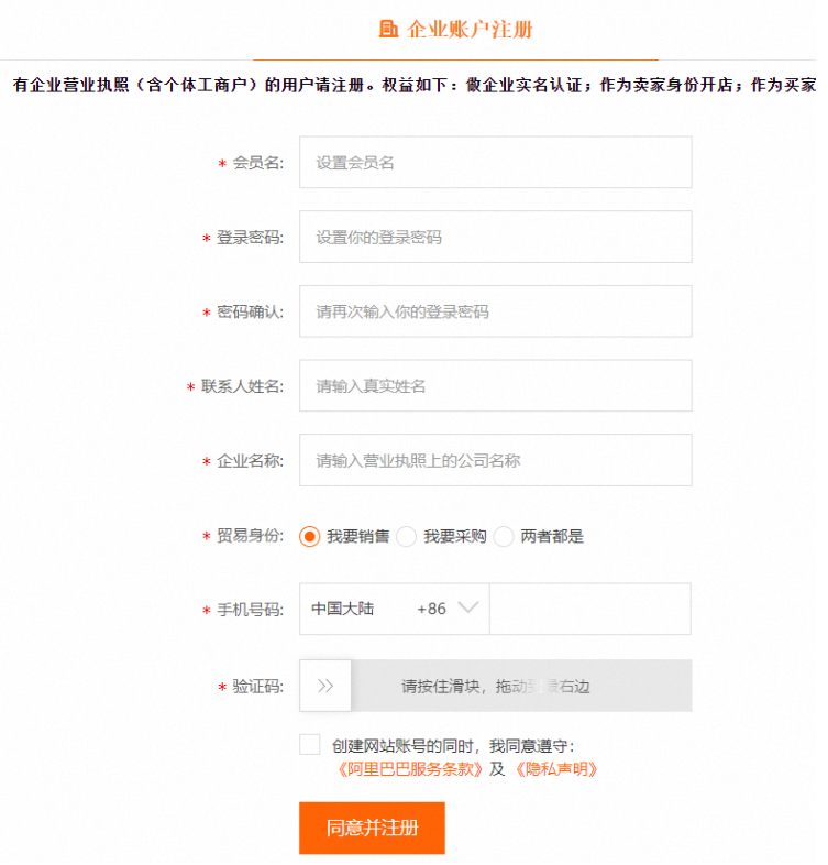 点击注册1688企业账号,注册后在线小二与您联系,帮助完成后续步骤
