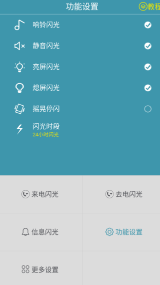 开启功能:打开APP,找到“来电闪光”或“LED闪烁提醒”选项,点击开启。