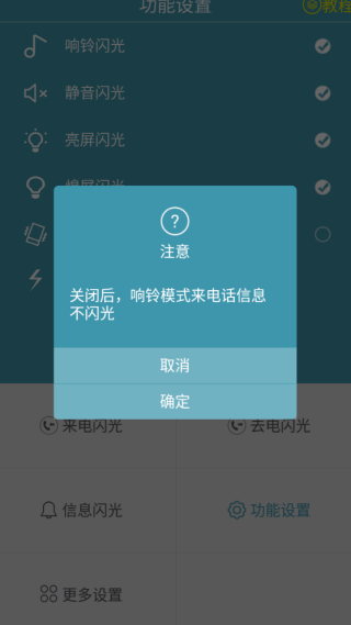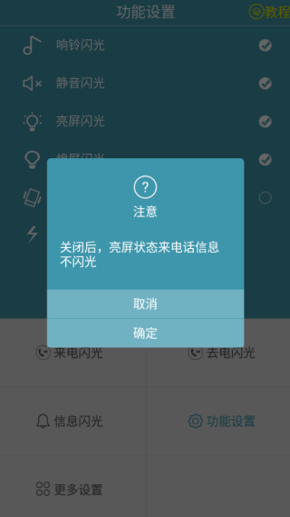 4、亮屏闪光也能随时关闭,带来的影响大家也能知晓,关闭很简单。