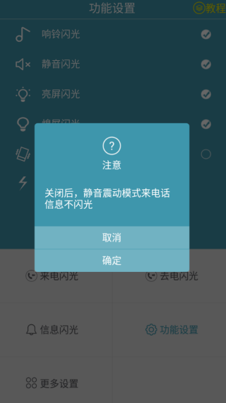 2、如果选择响铃闪光,这里会有提示,关闭后响铃模式电话信息不闪光,大家可以随时确定或者取消。