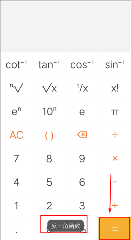 5、长按科学计算器“=”按键,切换反三角函数;