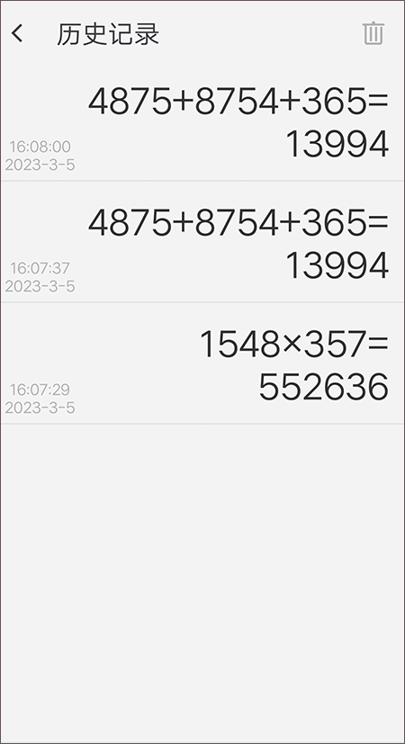 3、点击计算结果进入历史记录界面,点击手机返回键到计算界面;