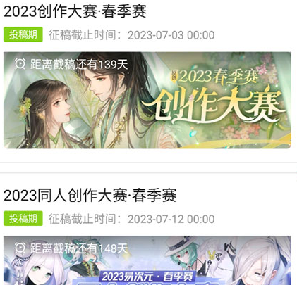 5、除了观看,还可以自己参与到其中,超多赛事和征稿等你来参与~