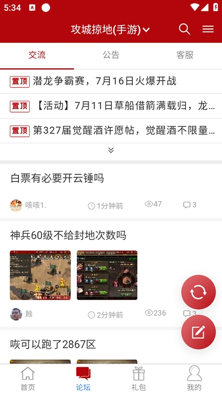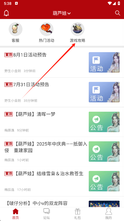 2.在“首页”可浏览热门活动、游戏攻略等内容,通过“论坛”进行发帖、回复、交流等操作。