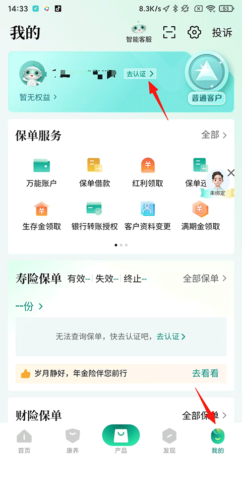 1.打开中国人寿寿险APP,点击我的-去认证;
